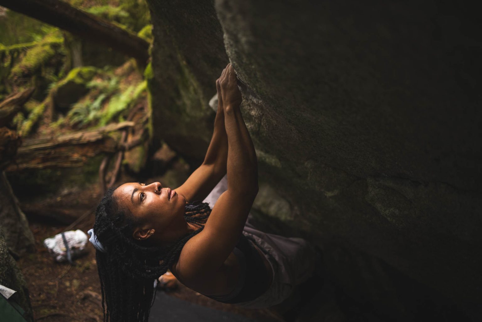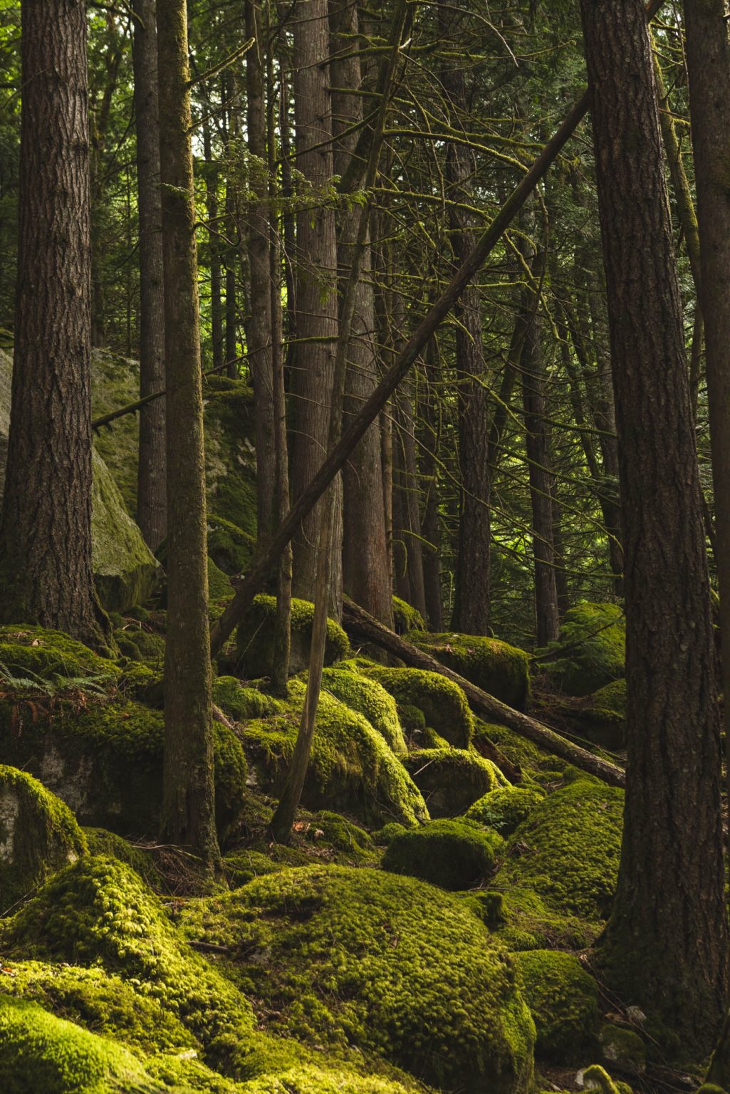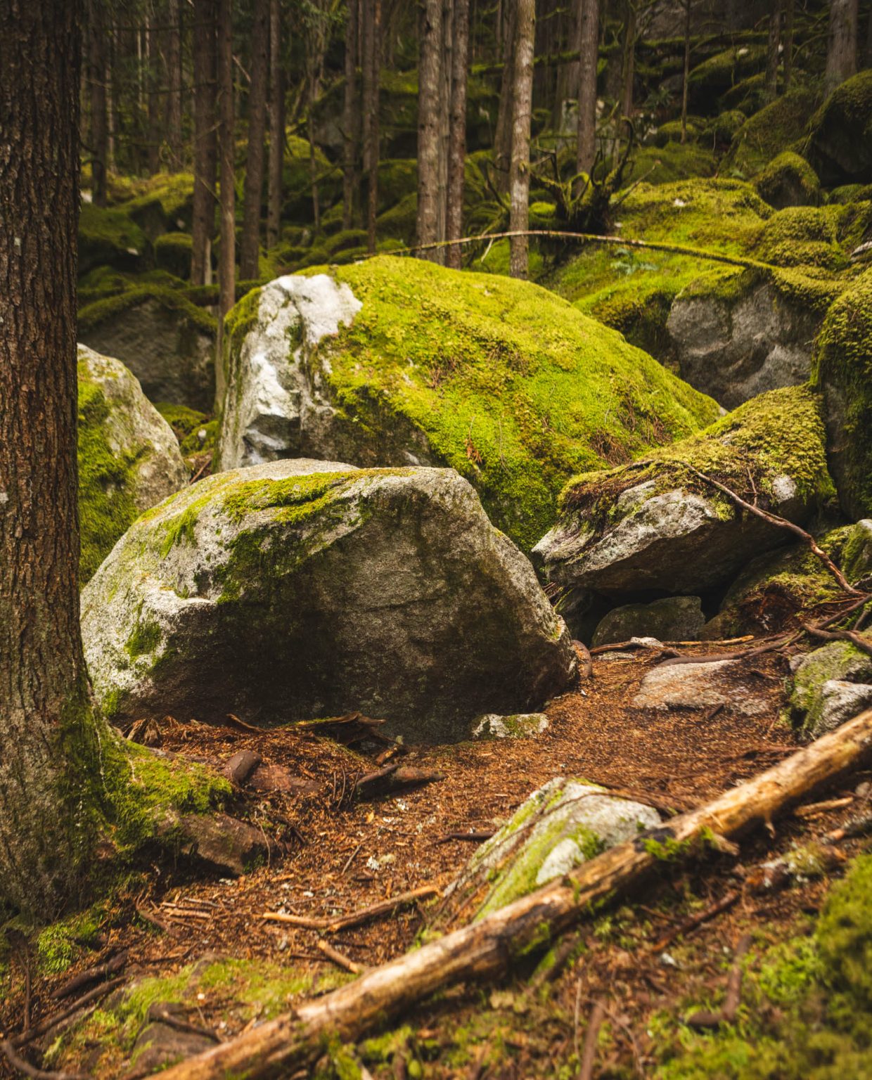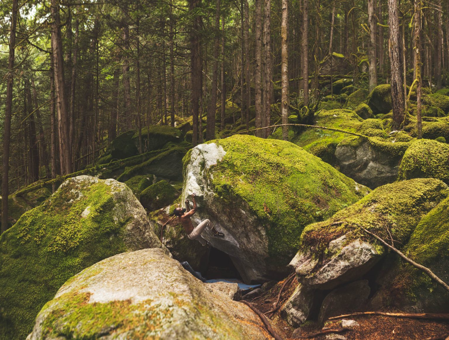 With my recent career shift, I hadn’t been behind the camera much, and the Tennessee landscape rarely pushes me to pick it up. But in Squamish, it was the opposite. Nearly every day I found myself reaching for my camera or unpacking the drone, drawn to the saturated greens of the rainforest—the moss, the ferns, the way light clings to the trees after a shower. One afternoon, instead of bouldering at Magic Kingdom, I wandered for hours with the camera focusing on minute details of the forest instead of the boulders.