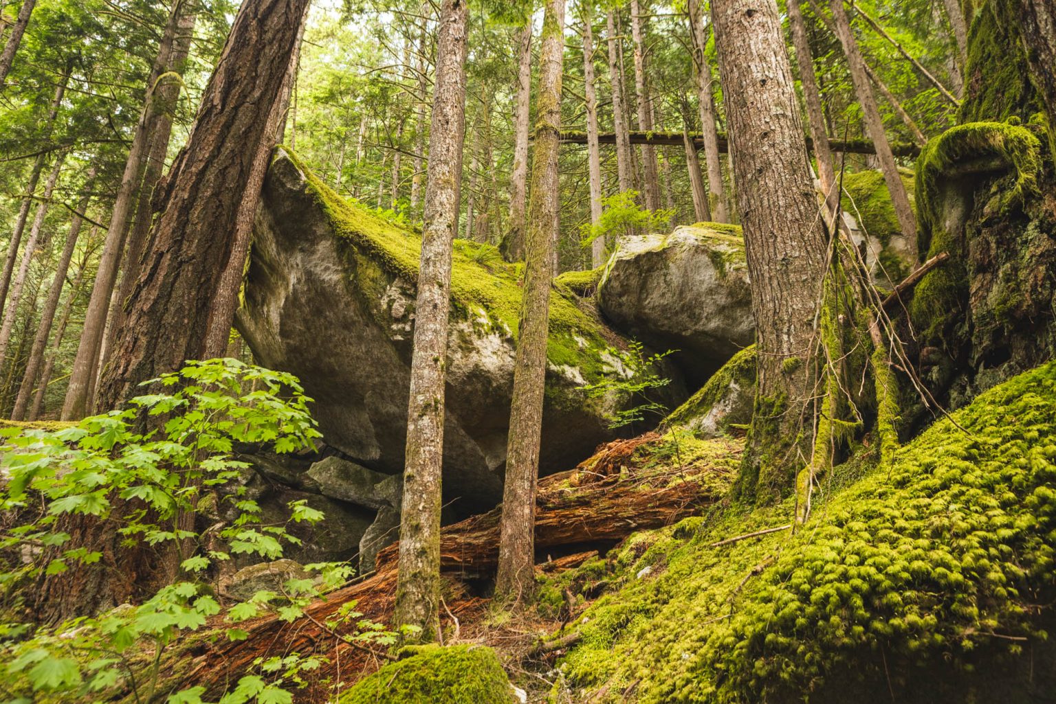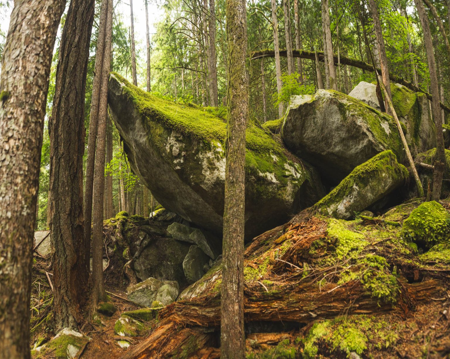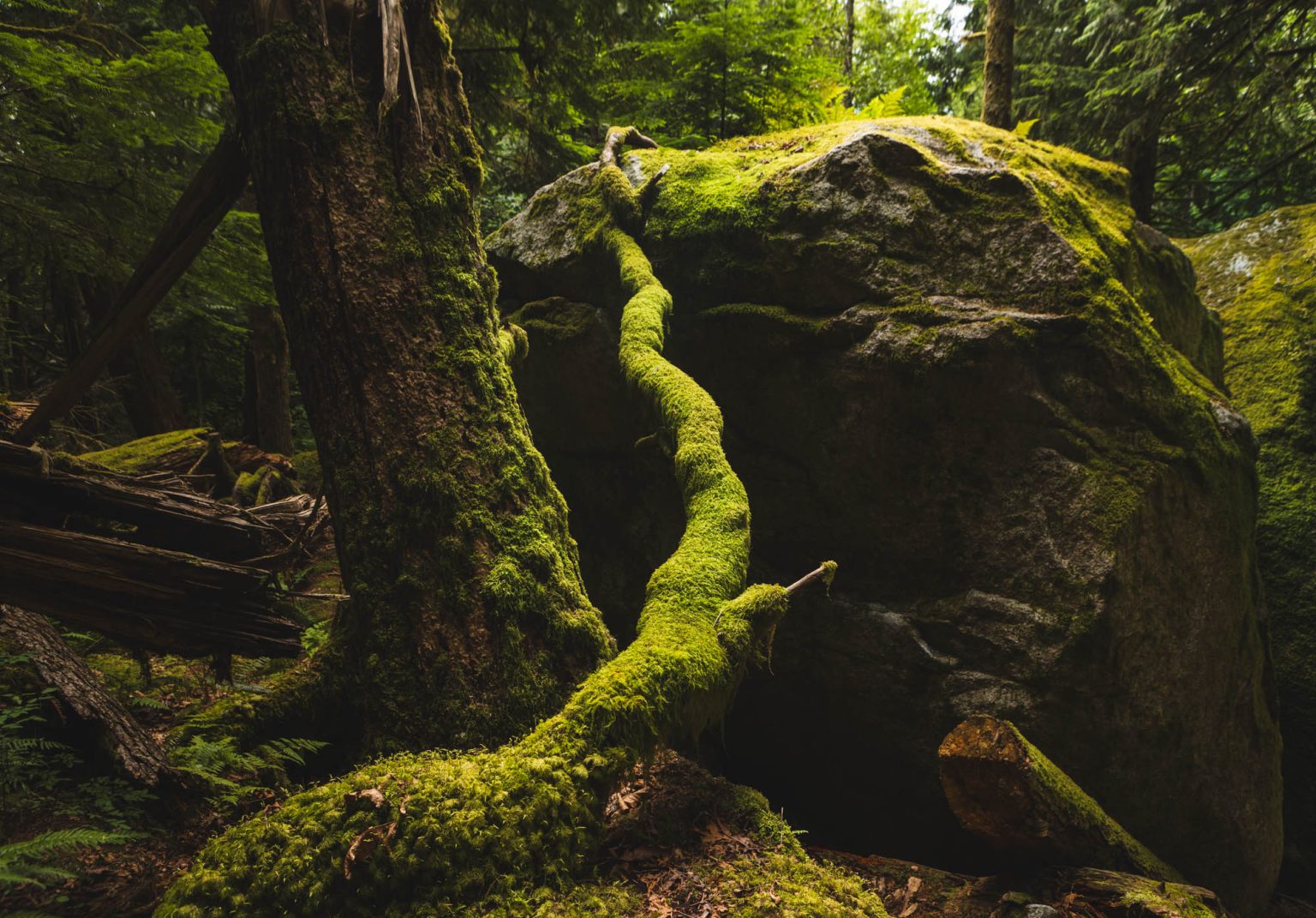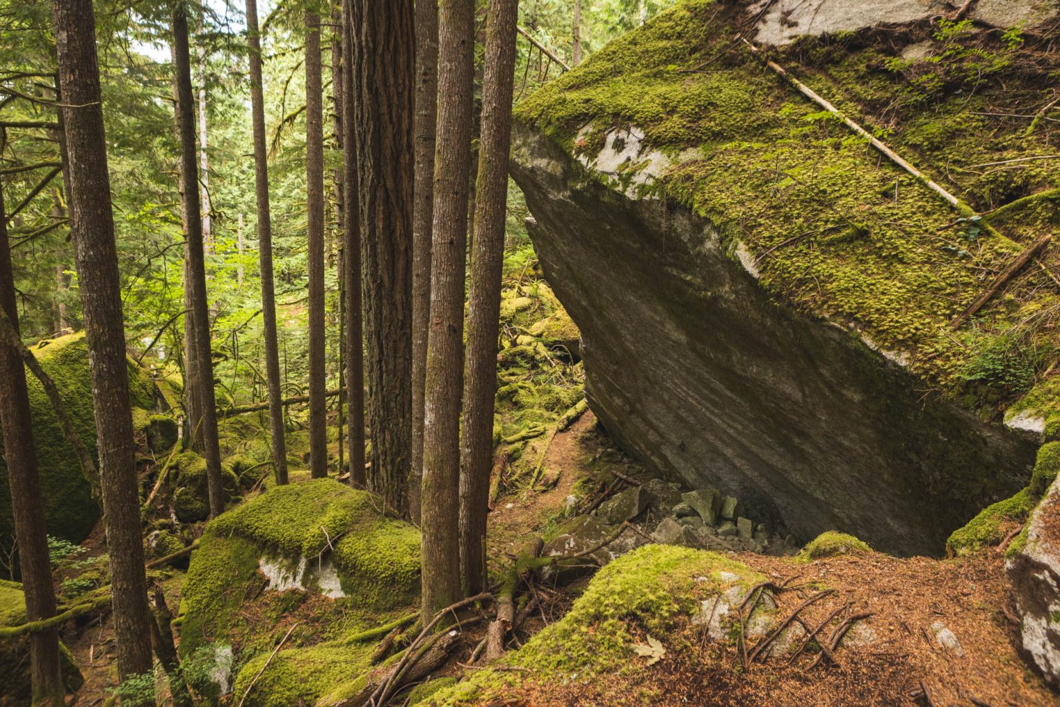 With my recent career shift, I hadn’t been behind the camera much, and the Tennessee landscape rarely pushes me to pick it up. But in Squamish, it was the opposite. Nearly every day I found myself reaching for my camera or unpacking the drone, drawn to the saturated greens of the rainforest—the moss, the ferns, the way light clings to the trees after a shower. One afternoon, instead of bouldering at Magic Kingdom, I wandered for hours with the camera focusing on minute details of the forest instead of the boulders.