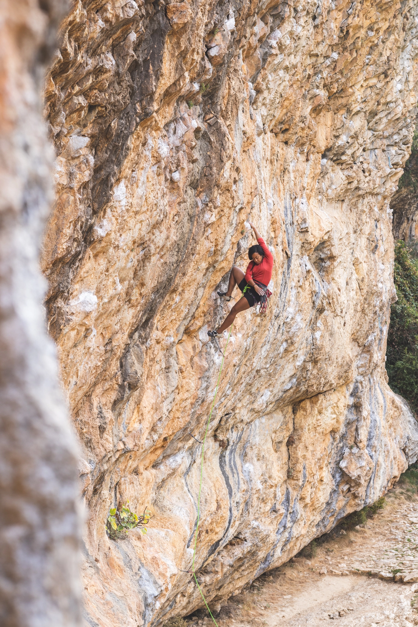 George and Imarta were preparing to climb a 5.10c. It was their last day in Viñales, and they were trying to make the most of their five days here. The next morning they were returning to Havana where they are professional dancers. George let me climb the route with the condition that I cleaned it.